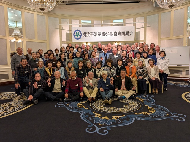 64期喜寿同期会 開催報告 2025年11月25日(火)、崎陽軒にて64期の喜寿同期会が開催されました。 当日は、多くの皆さまがご参加くださり、計70名が一堂に会しました。 久しぶりに再会された方々も多く、近況を語り合いながら、終始和やかな雰囲気の中で楽しい時間を過ごされました。 ご参加の皆さまにとって、あらためて同期の絆を感じるひとときとなりました。 田中秀一(64期)