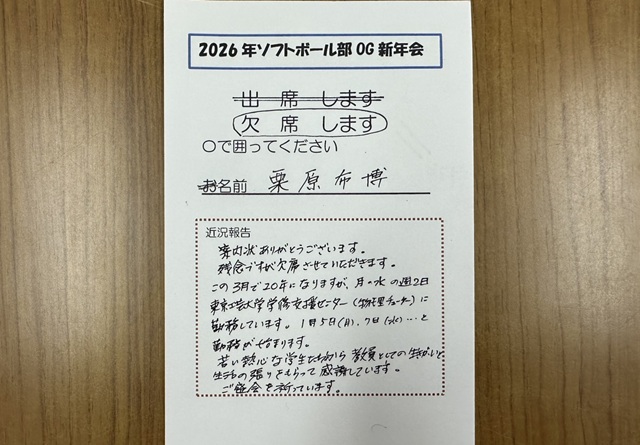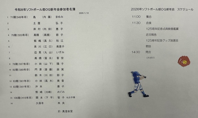 2026年1月10日(土)、毎年恒例のソフトボール部OG新年会が行われました。