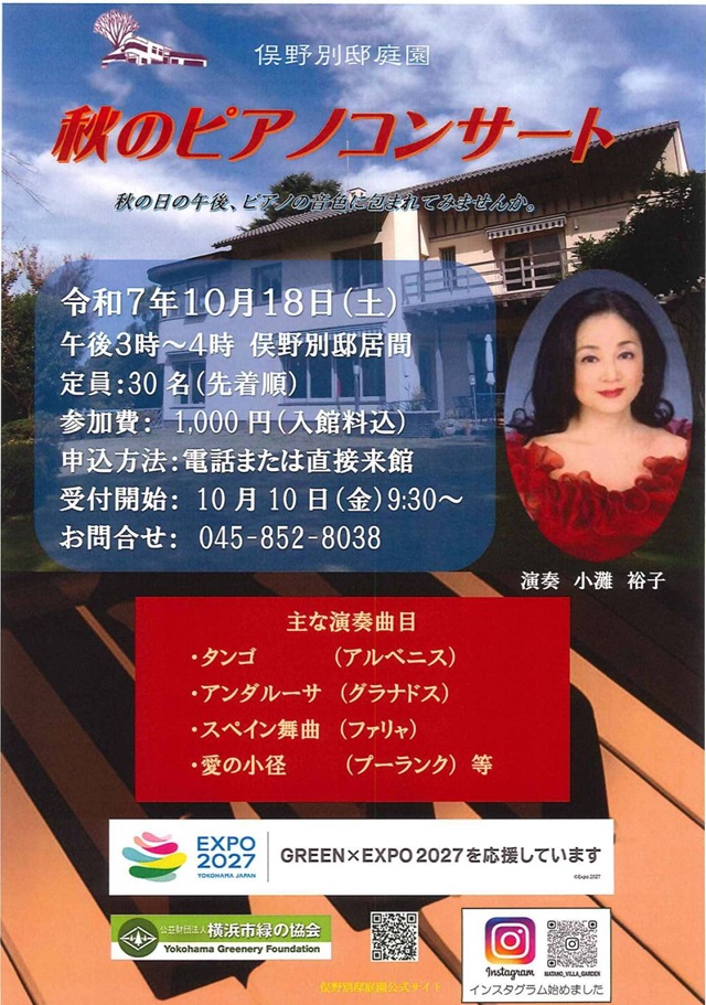 小灘裕子さん(68期)秋のピアノコンサート10/18(土)@俣野別邸庭園(藤沢市)