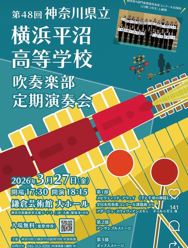 平沼高校吹奏楽部定期演奏会3月27日(金)@鎌倉芸術館大ホール