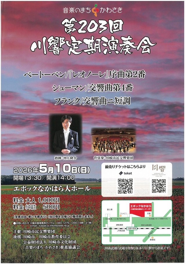 池田信さん(87期)川響定期演奏会5月10日(日) 他 演奏会情報 2026年3月15日(日)に開催された音楽劇「平沼高校と七つの扉」にもご出演された、池田信さん(87期)より演奏会のお知らせが届きましたのでご紹介いたします。