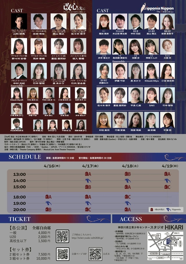 2026年3月15日(日)に開催された音楽劇「平沼高校と七つの扉」にもご出演された、岩瀬美智子さん(アイザック・E)よりミュージカル出演のお知らせが届きましたのでご紹介いたします。