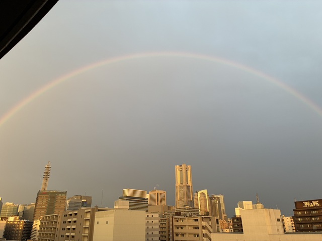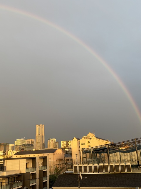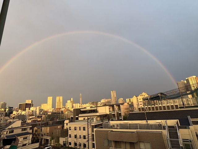 2026年4月27日(月)の夕方、母校にかかる虹が見えました。真澄会員の方からの写真です。