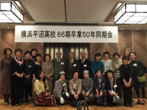 昭和42(1967)年度、同43年3月に母校を卒業して以来、およそ五十年。第七回横浜平沼高校第65期同期会が、10月23日、ホテル横浜ガーデン「ミモザ」にて開催されました。