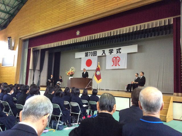 | 花曇りの4月7日、第70回という節目の入学式が行われ、115期生277名(男子78名・女子199名)が式に臨んだ。 まず、オーケストラ部による祝賀演奏が行われ、華やかなメロディーがお祝いのムードを盛り上げる。 小野校長から入学許可の氏名が一人ひとり読み上げられた。 小野校長、PTA会長、鈴木真澄会長からそれぞれお祝いの言葉が述べられ、3人の共通した生徒へ贈る言葉は、「学校・保護者・同窓会の三者がそれぞれの立場で新入生を応援していく」というもので、真澄会の存在感の大きさを感じた。 校歌紹介の後、校歌を披露したのは、サッカー部などユニホーム姿のおよそ50人の部活男子生徒である。男子の入学が減っている中で、力強い歌声は頼もしいかぎりであった。 最後は吹奏楽部による、軽やかな音楽で入学式が無事終了した。 |