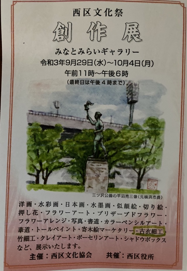 海老根(中嶋)弘美さん(62期)西区文化祭創作展09月29日(水)~10月04日(月)@みなとみらいギャラリー