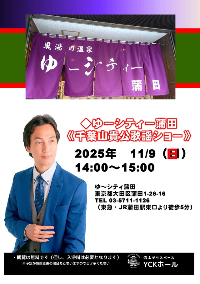千葉山貴公さん(94期)コンサート情報2026年02月15日(日)まで コンサートの情報は変更されることがあります。 最新の情報は、千葉山貴公さん(94期)のブログでご確認ください。 千葉山貴公さん(94期)のブログは、こちらです。 千葉山貴公(ちばやまたかひろ)ブログ http://blog.livedoor.jp/yumehitotsu/ 最新シングルCD「春待ち便り」