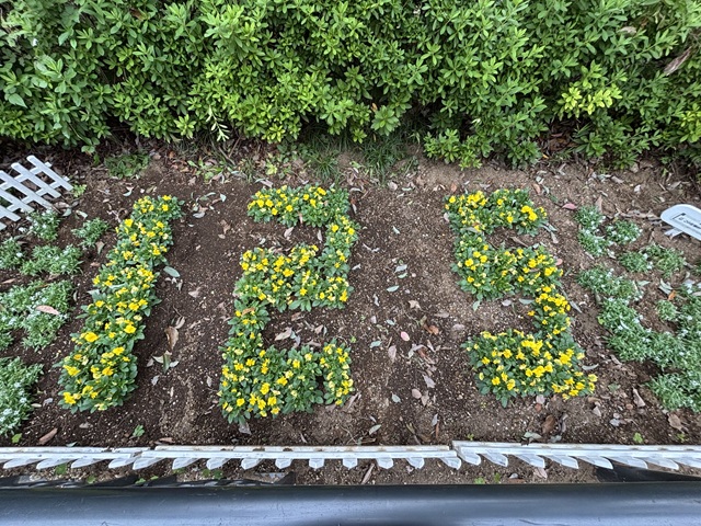 花壇に咲く「125」。PTAの皆さんが育てる記念のパンジー 正門横の花壇に、鮮やかな黄色のパンジーで形づくられた「125」の文字が並んでいます。 これは、創立125周年を記念して、PTAの皆さんが丹精込めて育ててくださっているものです。 季節の移ろいとともに花々の表情も変わり、訪れる人の目を楽しませてくれています。 校舎に続く道の入り口で、母校の節目の年を静かに、そして明るく祝ってくれる花壇です。