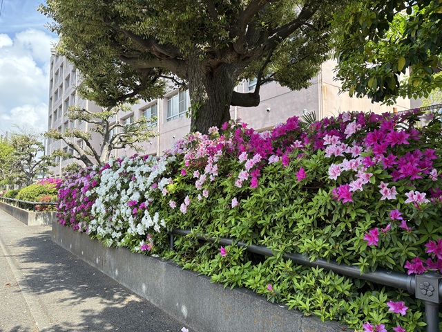 2026年4月14日(火)、母校では、桜の後のツツジが綺麗です。